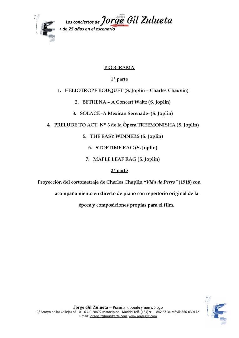Jorge Gil Zulueta. Concertista y compositor especializado en el acompañamiento al piano de cine mudo y que está enmarcado dentro de una labor de investigación – en la actualidad a través de un